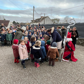 Après une petite représentation d'un chant répété par les enfants depuis plusieurs semaines, Saint Nicolas est venu leur rendre visite, avec une hotte pleine de papillottes !